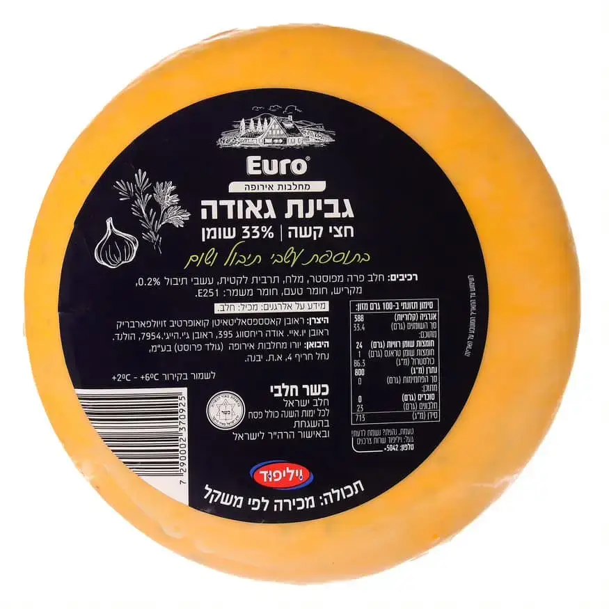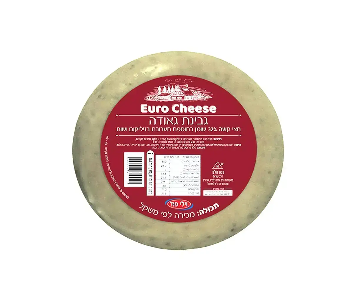 גבינת גאודה בתוספת תערובת בזיליקום ושום 32%שומן שקיל
