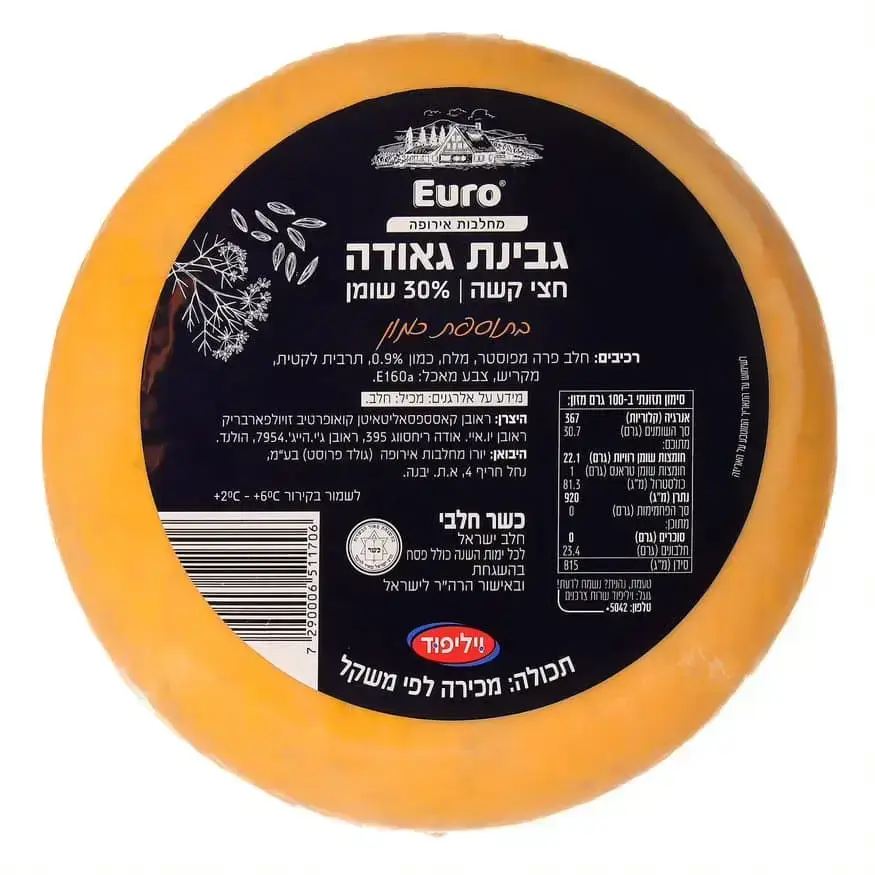 גבינת גאודה (גלגל) מהולנד 30%שומן שקיל