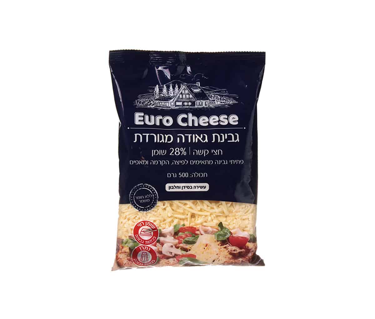 גבינת גאודה מגורדת 500גרם 28%שומן EURO CHEESE